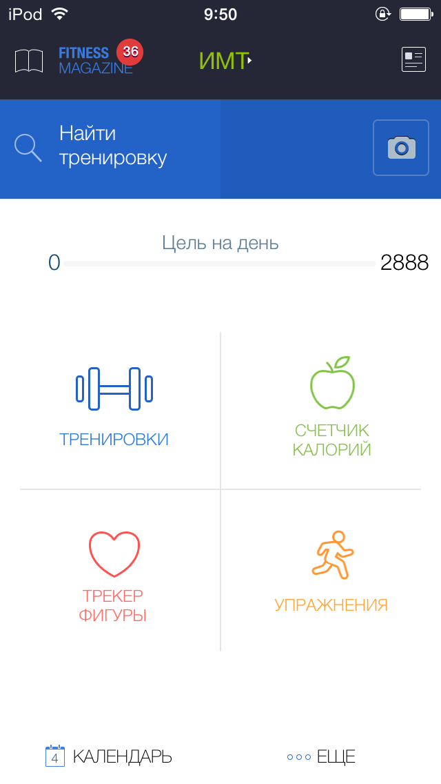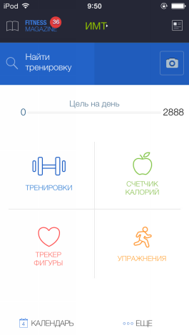 99 рублей — ровно столько будет стоить появление самой многофункциональной тренировочной программы в вашем i-устройстве: All-in Fitness сочетает в себе практически все плюсы вышеперечисленных приложений. В главном меню можно активировать одну из четырех опций. Первая иконка поведет в раздел с готовыми тренировками (их можно составлять самому, пользуясь советами личного тренера), вторая — в подменю для расчета калорий, третья — в рубрику «Трекер фигуры» (там особенно удобно следить за похудением), а четвертая пиктограмма выдает три списка упражнений: они сортируются по частям тела, группам мышц или снарядам.