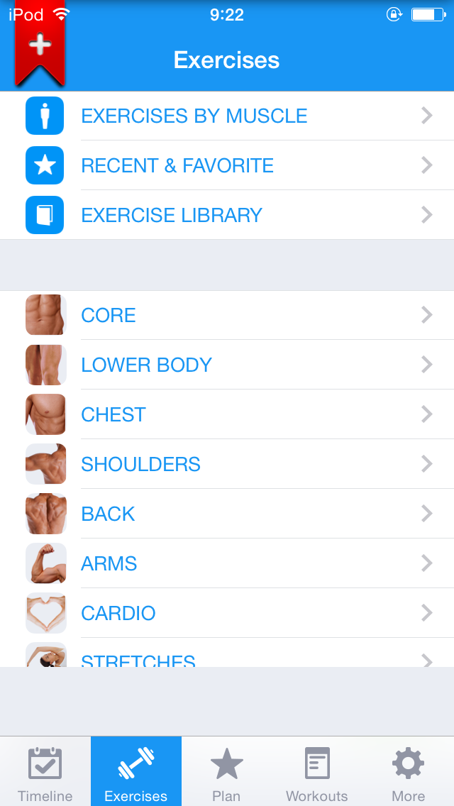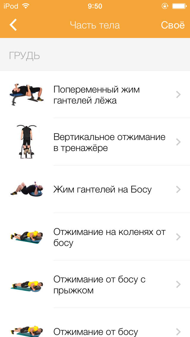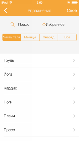 Если станет скучно заниматься по традиционной схеме (понедельник-среда-пятница, работа над различными группами мышц), стоит зайти в раздел «Библиотека» — нажимая на части тела (рисунок выглядит как иллюстрация из детского учебника по анатомии), вы сможете тут же перейти к огромному списку упражнений для этой области.