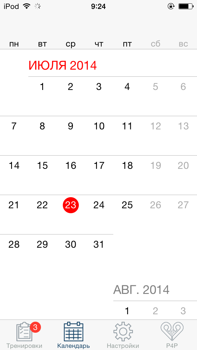 Внутри программы есть четыре главные функции — таймер, чтобы точно фиксировать паузу между подходами; статистика, чтобы наблюдать за прогрессом; будильник, чтобы не забывать потренироваться после трудного дня; календарь, чтобы отмечать дни занятий. Из плюсов — большие элементы интерфейса. И это не такая уж мелочь, как кажется с дивана: пытаться попасть в малюсенькие кнопочки трясущимися после отжиманий руками – то еще удовольствие.