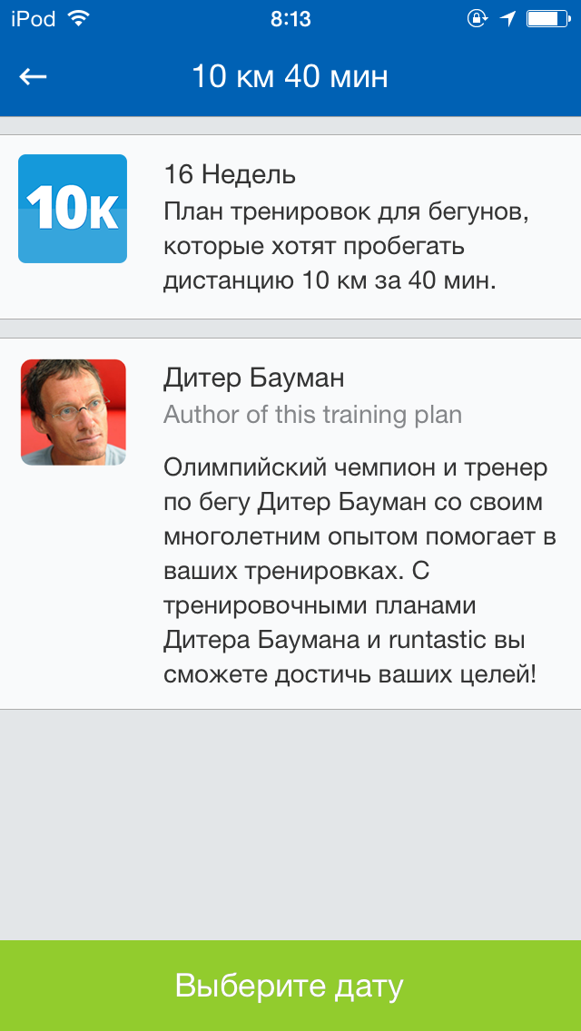 Для тех, кто не любит обычный бег, присутствуют режимы и с другими видами спорта — подсчитывать передвижения можно и при игре в бадминтон или настольный теннис. Кроме того, предусмотрена покупка полной версии Runtastic (примерно 5 долларов): в ней можно самому определять маршрут и выбирать планы с интервальными тренировками (бег — отдых — бег — отдых). Впрочем, самыми эффективными для похудения и набора формы будут тренировки, созданные экс-чемпионом Олимпиады Дитером Бауманом: немецкий легкоатлет учит правильно худеть и рассказывает, как грамотно дышать во время бега. Курсы достаточно продолжительные — ради показателя в 10 километров за 40 минут придется трудиться на протяжении десяти недель.