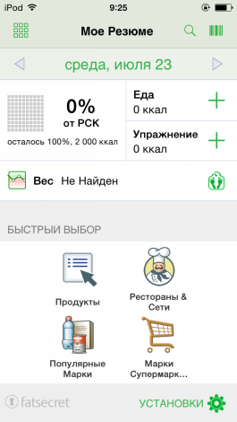 Если продукта нет в базе, он добавляется штрихкодом (ленивые просто наведут на него камеру, дотошные — введут с клавиатуры; еда и напитки определяются довольно корректно). Важно, что FatSecret не ограничивается одной едой: если вы сожгли энное количество калорий, то занятия спортом следует внести в отдельную графу.
