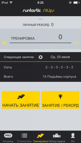 Датчик, который отвечает за отключение экрана во время разговора, еще никогда не был так полезен, — отжимаясь от пола, вы будете прикрывать сканер грудью, а приложение «Отжиматор» запротоколирует каждое сделанное движение. Отжиматься волей-неволей придется правильно — если грамотно расположить iPhone (на iPod и iPad датчика, увы, нет), уже после 25-30 отжиманий вы почувствуете ощутимую боль в мышцах.
