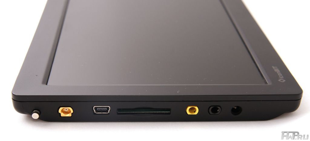 В плеере iconBIT HMP808TV все разъёмы находятся на левом торце. Идём снизу вверх: разъём для питания, аудио и видео выход (раздельные, стерео и композит), слот для SD карточек, miniUSB порт OTG и разъём для подключения внешней антенны. Кстати не удивляйтесь, что в обзорах продукции iconBIT мы практически не употребляем аббревиатуру SDHC - ибо любой современный продукт iconBIT (да и все остальные тоже соответствуют), поддерживающий SD, автоматически поддерживает SDHC. Это можно воспринимать как само собой разумеющееся, поэтому SDHC мы и не упоминаем. Пишем SD - подразумеваем SD/SDHC.