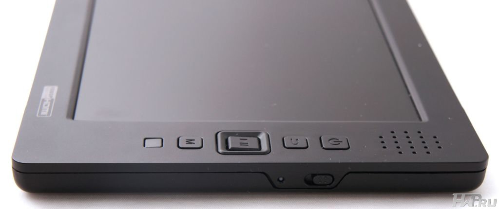 Как и всегда, почти всю лицевую панель iconBIT HMP808TV занимает экран. К счастью многих пользователей HMP808TV не оснащается сенсорным экраном - всё управление возложено на кнопки справа от экрана. Четырёхпозиционная клавиша с центральной кнопкой, "Power", кнопки возврата и входа в меню - вот и весь набор органов управления. Жаль, что нет отдельной "качельки" - регулятора громкости. А вот то, что чуть ниже кнопочек - это окошко ИК приёмника. Не зря ведь в комплекте пульт ДУ прилагается.