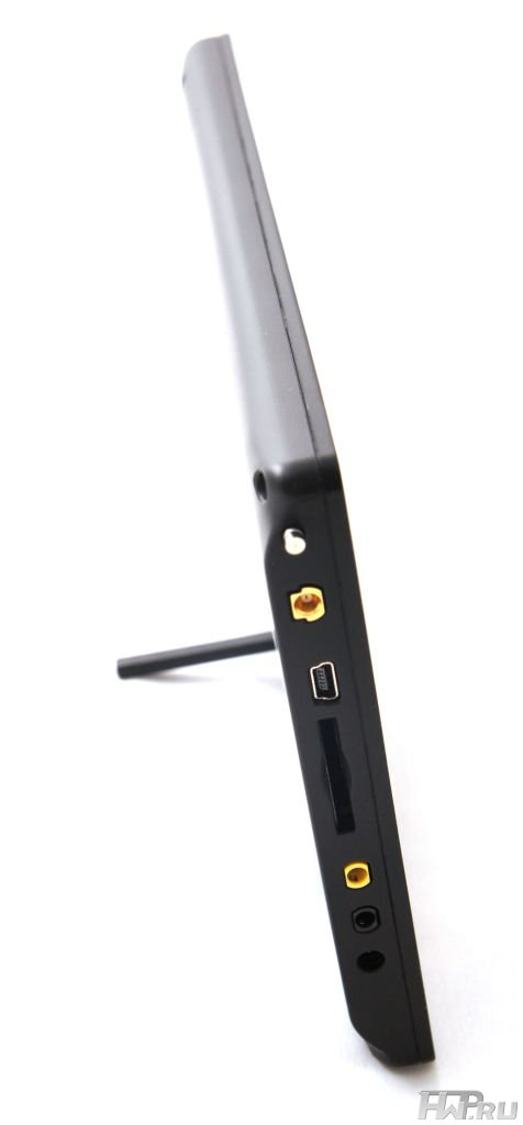 Как всегда, выделим самое интересное. В первую очередь, конечно же, стоит отметить дисплей - это современная широкоформатная модель с диагональю 8" и разрешением 1280х768, точно такой же дисплей используется в другой топовой модели HMP815HDMI, с которой мы уже познакомились в одном из недавних обзоров. Также хотелось бы отметить наличие и встроенной телескопической антенны и гнезда для подключения кабельной антенны (для чего в комплекте идёт переходник). Таким образом, использование плеера не ограничивается лишь походным вариантом. Так как встроенных 4 Гб на много фильмов не хватит, к месту придутся и USB OTG и SD слот. А вот из недостатков - отсутствие HDMI выхода, пользователю доступен только аналоговый RGB видеовыход. С другой стороны - HMP808TV сам по себе телевизор, зачем подключать его к другому телевизору?