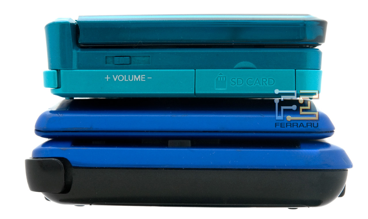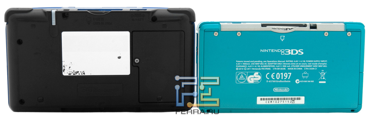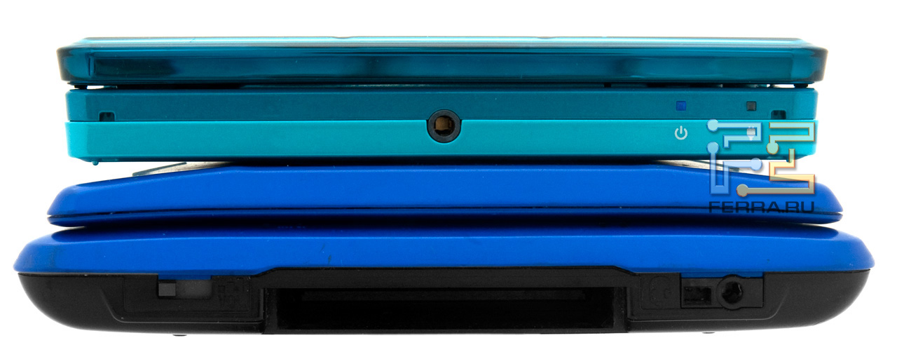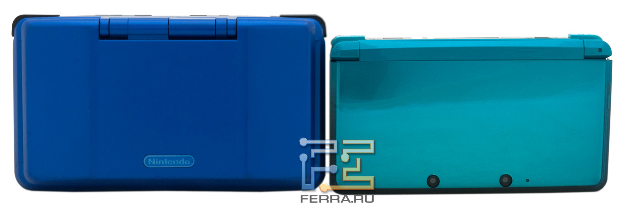 Верхний торец Nintendo 3DS и Nintendo DS. Опять же, обратите внимание на габариты консолей