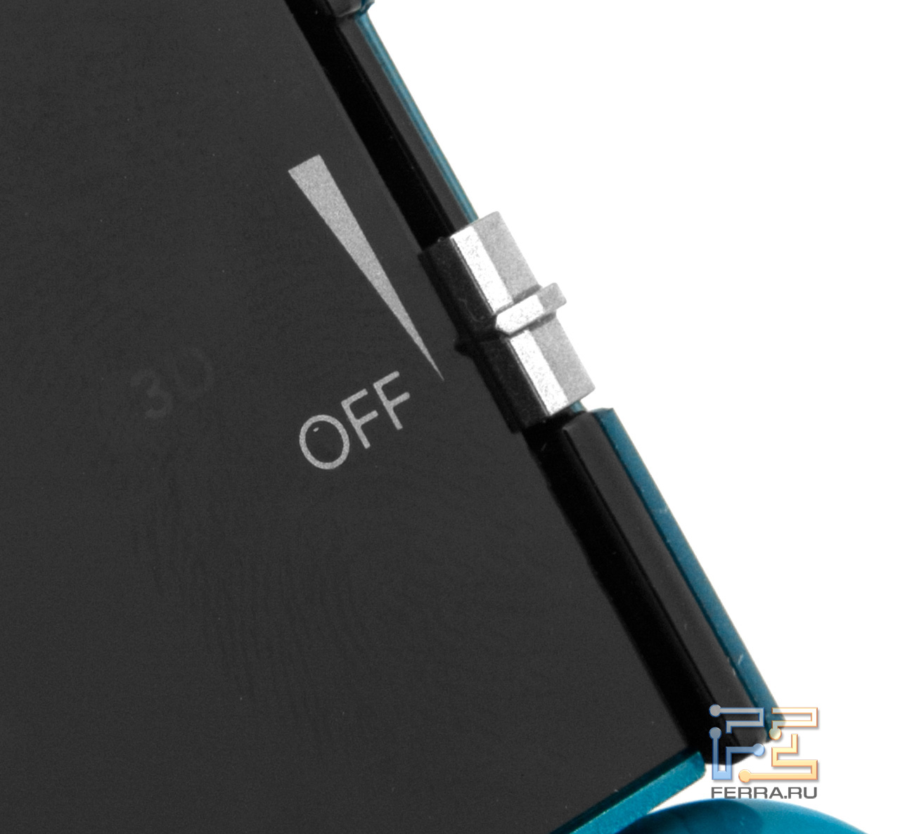 Справа от верхнего экрана расположен регулятор глубины 3D-изображения. Он позволяет подстроить 3D максимально удобно для ваших глаз.
