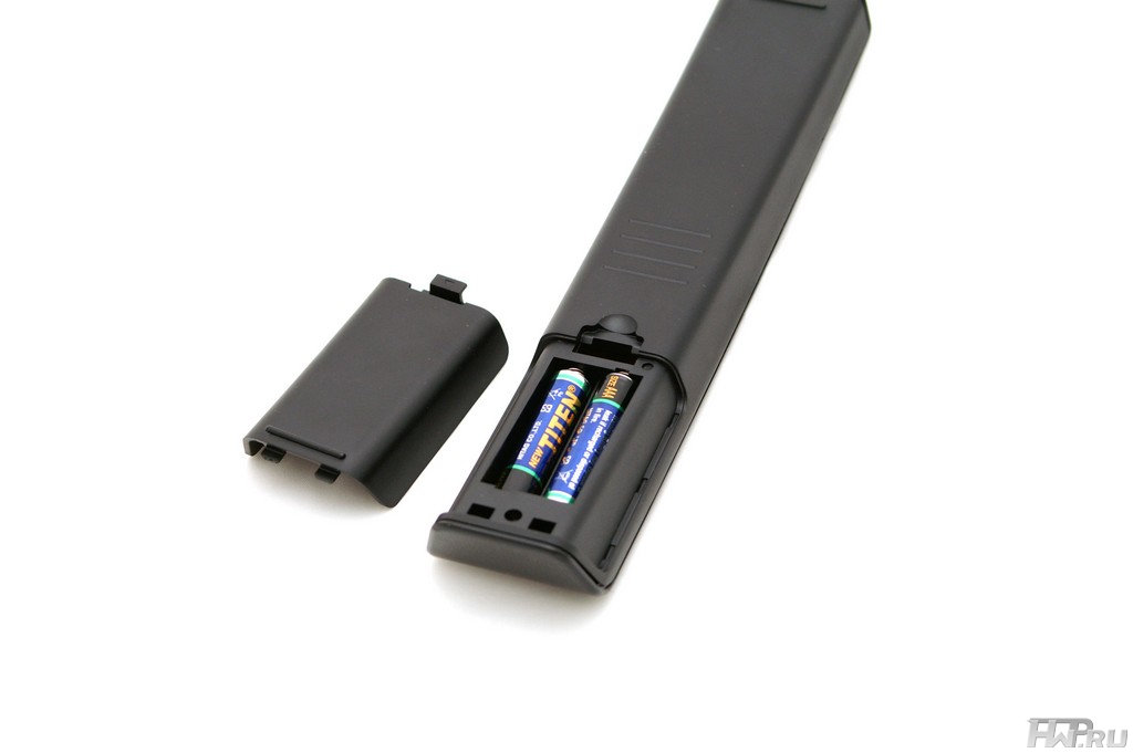 На лицевой панели имеется лишь небольшой выступ, как бы намекающий, что где-то здесь находится ИК-приёмник, принимающий команды от пульта управления.