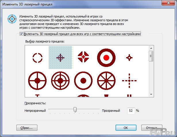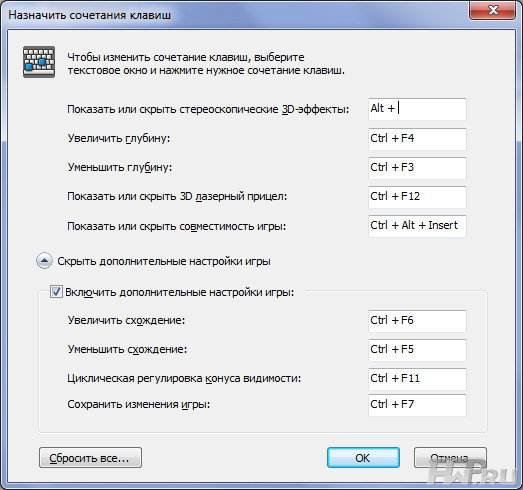 После этого настройку можно завершить – 3D Vision включен. Для игры потребуется только активированный режим 3D Vision, после чего можно включить очки и запустить игру. Глубина 3D-эффекта легко регулируется колесом на передатчике, а фокусировка – клавишами Ctrl+F5 и Сtrl+F6. Также может потребоваться применение особого лазерного прицела, поскольку оригинальный прицел в игре раздваивается и использовать его невозможно. Активируется лазерный прицел сочетанием Ctrl+F12.