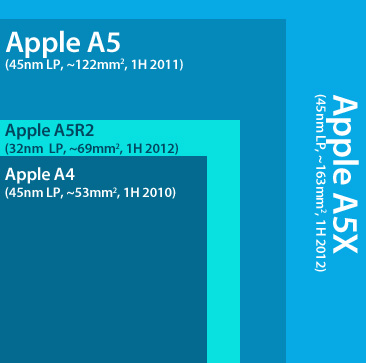 Apple решила опробовать 32-нм HKMG-техпроцесс Samsung на A5 в третьем поколении Apple TV и в некоторых iPad 2. Тиражи первых продуктов относительно невысокие, в то время как iPad 2 поставляется всё ещё большими партиями. Дабы решить проблему, Apple поставляет планшеты как на 45-нм, так и на 32-нм чипах. Риски минимальные, зато компания изучает 32-нм производство, готовясь к запуску нового iPhone с 32-нм системой на чипе следующего поколения.