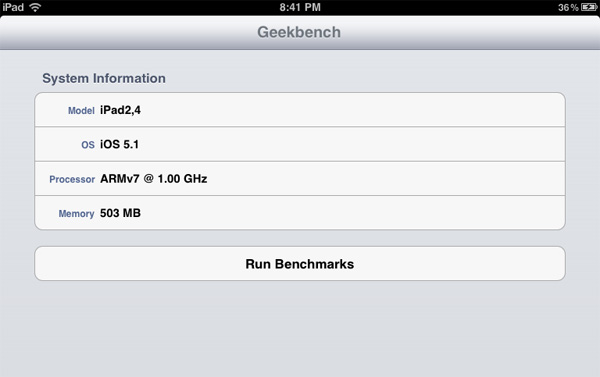 Более новые устройства iPad 2,4 должны поставляться с предустановленной iOS 5.1, а старые iPad 2,1 поставляются с 5.0.1. Но модель можно точно определить с помощью специальных утилит вроде Geekbench, Linpack или Battery Life Pro. В руки журналистов Anandtech образец iPad 2,4 попал с Best Buy — дело в том, что пока они встречаются редко, и просто в рознице их найти сложно.