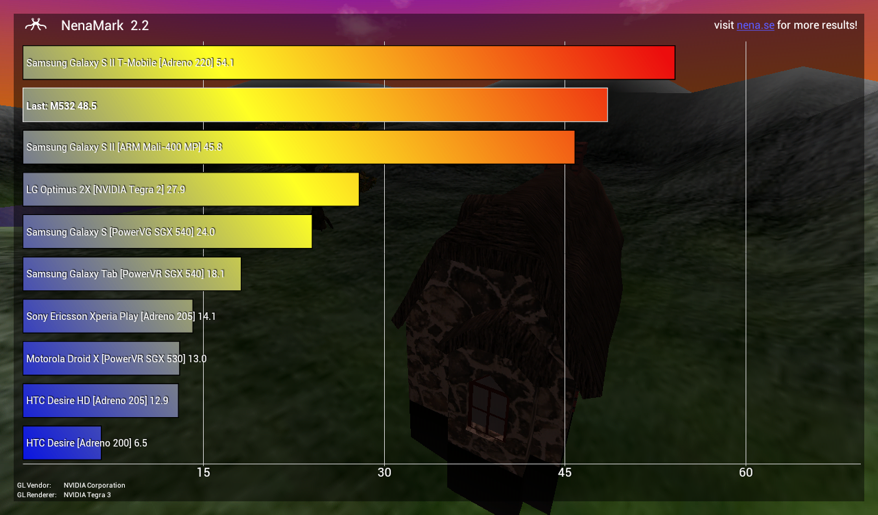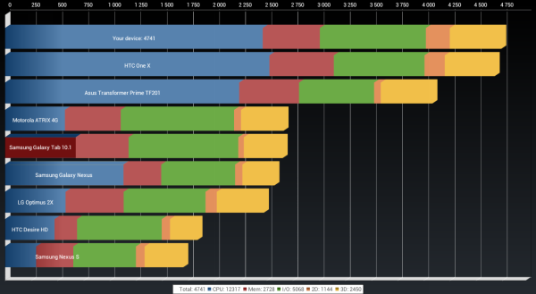 Планшет основан на довольно производительной платформе Tegra 3 с процессором Cortex A9, 1,4 ГГц, а ОЗУ и вовсе хоть отбавляй. В бенчмарке Linpack тестирование было проведено в двух режимах: Single Thread — 39,013 MIPS и Multi Thread — 110,239 MIPS. С SunSpider планшет справляется за 2119,4 мс. Результат в BrowserMark также радует — 105617 баллов. В Quadrant Standart итоговый результат — 4382 балла. Весьма неплохо. Также тестирование графической подсистемы было проведено в пакете NenaMark2. Платформа Tegra 3 тут смогла обеспечить вполне достаточный уровень производительности — 53,2 кадра/с.