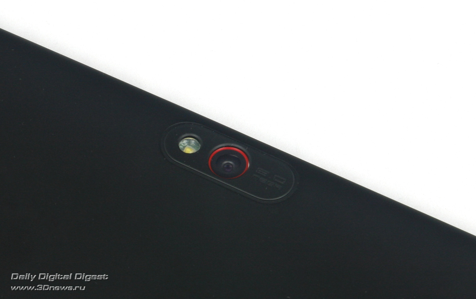 На тыльной стороне установлена основная автофокусная камера со вспышкой, а также пара динамиков. К слову, динамики при работе с планшетом легко закрыть руками, что негативно влияет на качество звучания, которое оказалось на удивление неплохим.