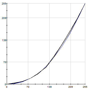 На иллюстрациях, приведённых ниже, отображены гамма-кривые (чёрные графики), полученные во время измерений, целевая гамма 2,2 (светло-синий график). Как видите, отклонения минимальны.