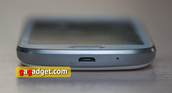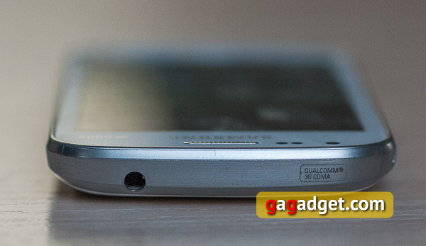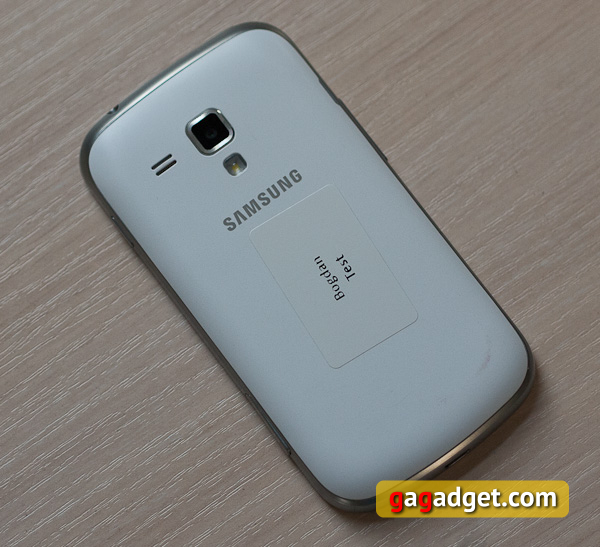 Galaxy S Duos при первом же знакомстве вызывает самые приятные эмоции: он отлично выглядит и аккуратно собран из качественных материалов. Признаться, я ожидал увидеть засилие глянцевого пластика, однако крышка Galaxy S Duos неожиданно оказалась выполнена из матового пластика с покрытием Soft Touch. Как и положено, практически всю лицевую сторону занимает 4-дюймовый экран с разрешением 480х800 точек, выполненный по технологии SC-LCD. Качество экрана очень хорошее, он отличается очень высокой яркостью и хорошими углами обзора, единственным его минусом можно назвать сильную засветку чёрного цвета.