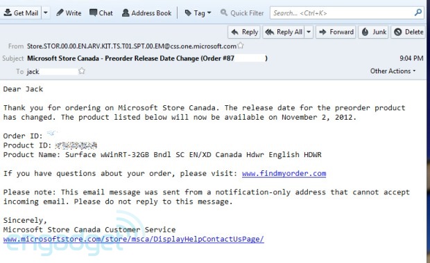 Между тем, в Англии Microsoft задерживает выход Surface RT на неделю. «Дата запуска для предоплаченных продуктов была изменена, — говорится в электронных письмах покупателям, сделавшим предоплату за Surface в Англии. — Указанный ниже продукт будет теперь доступен 2 ноября 2012 года». Не известно, что стало причиной задержки выхода Surface в Англии, но, по некоторым данным, виной этому может служить великобританская таможня.
