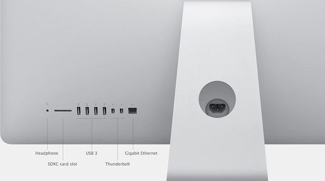 Моноблоки имеют встроенную веб-камеру FaceTime HD 720p с двойным микрофоном, оснащены стереодинамиками с диффузорами в нижней части корпуса экрана. Среди портов присутствуют два Thunderbolt (с возможностью подключения мониторов по Mini DisplayPort и через переходники — по DVI, VGA и dual-link DVI), четыре USB 3, гигабитный Ethernet, картовод SDXC, 3,5-мм аудиоразъём с оптическим цифровым выходом. Встроены модули Wi-Fi 802.11n и Bluetooth 4.0.