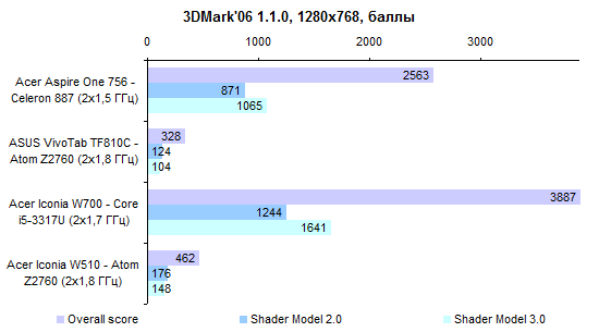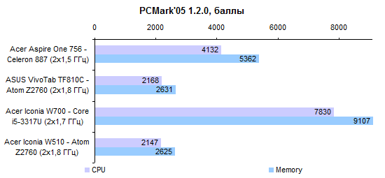 В любом случае результаты будут сравнимы скорее с показателями ARM-устройств, нежели ноутбуков и планшетов на x86-процессорах. Правда, следует помнить, что и по производительности Atom Z2760 сравним скорее с ARM, чем с Core i5, — в типичных сценариях работы в Windows ощутить нехватку мощности можно запросто.