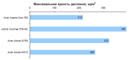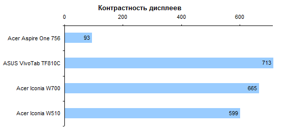По характеристикам дисплея Iconia W510 уступает конкурентам