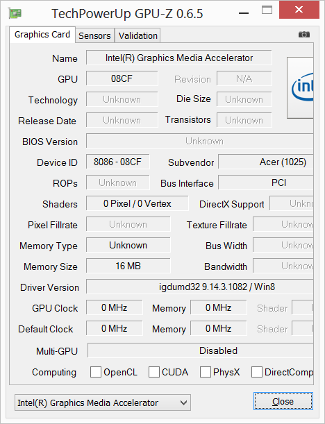 | Графический контроллер | Intel GMA 3600 (Imagination PowerVR SGX545), встроен в процессор |