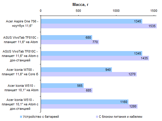 | Масса | Планшет — 565 г Планшет с док-станцией — 1160 г |