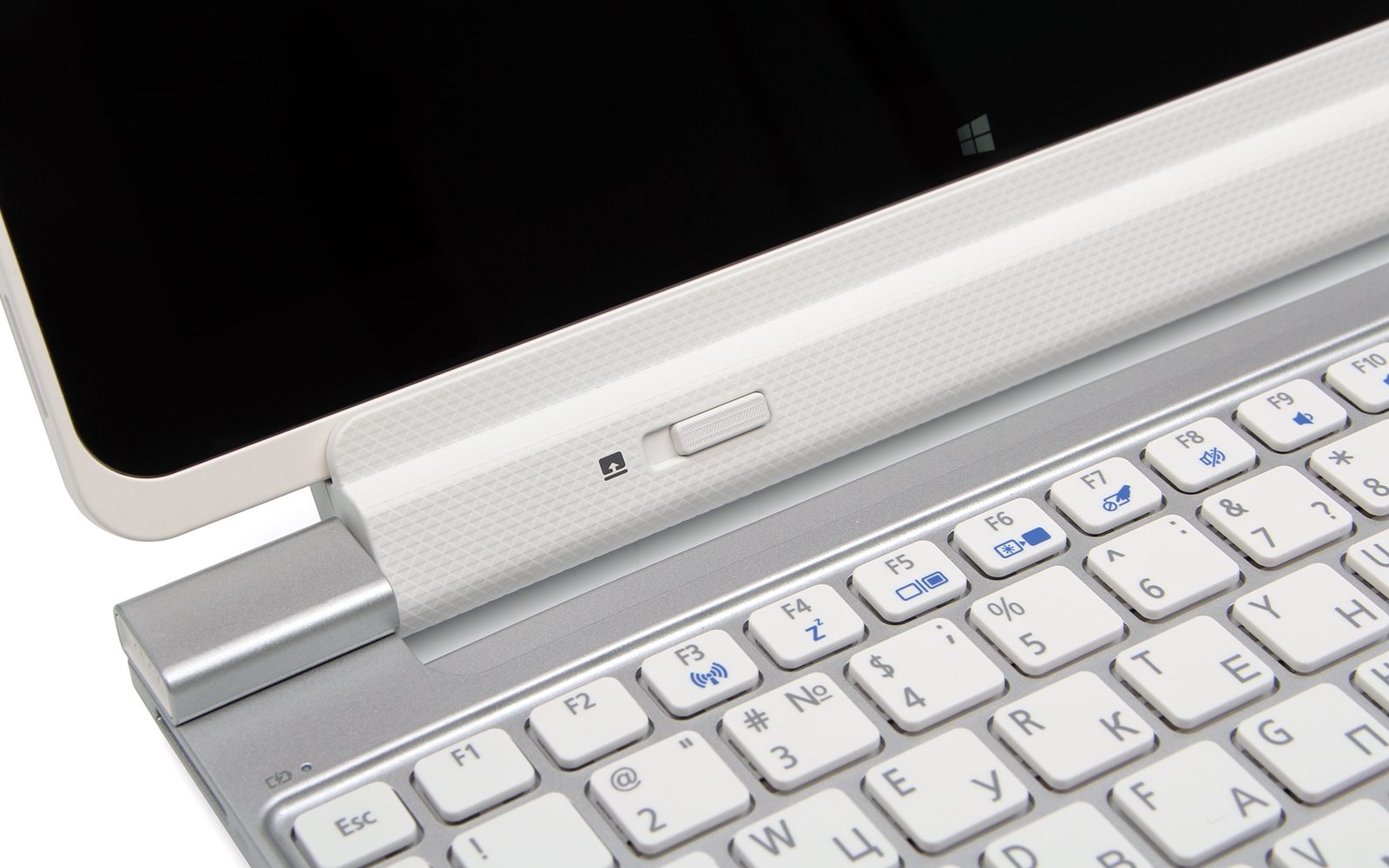 Извлечение планшета из дока тоже максимально упрощено: достаточно сдвинуть не особенно тугой ползунок, слегка потянуть — и планшет отсоединяется.