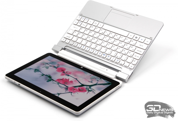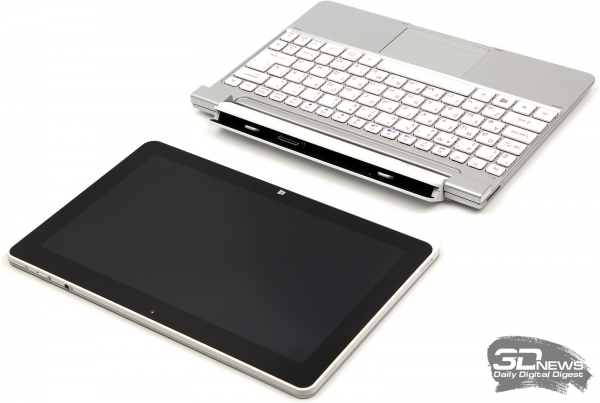Разумеется, данный планшет — это не просто планшет, а трансформер, который можно превратить в ноутбук (а вернее, нетбук, если учесть габариты и начинку), пристегнув к нему клавиатурную док-станцию.