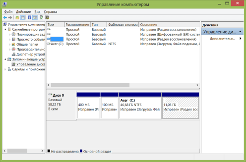 В наиболее доступной конфигурации Acer Iconia W510 оснащается накопителем объемом 32 Гбайт. Следует иметь в виду, что Windows 8 со всеми штатными приложениями, файлами подкачки и гибернации, разделом восстановления (без которого переустановить ОС будет весьма затруднительно) и прочими необходимыми штуками занимает порядка 31 Гбайт.
