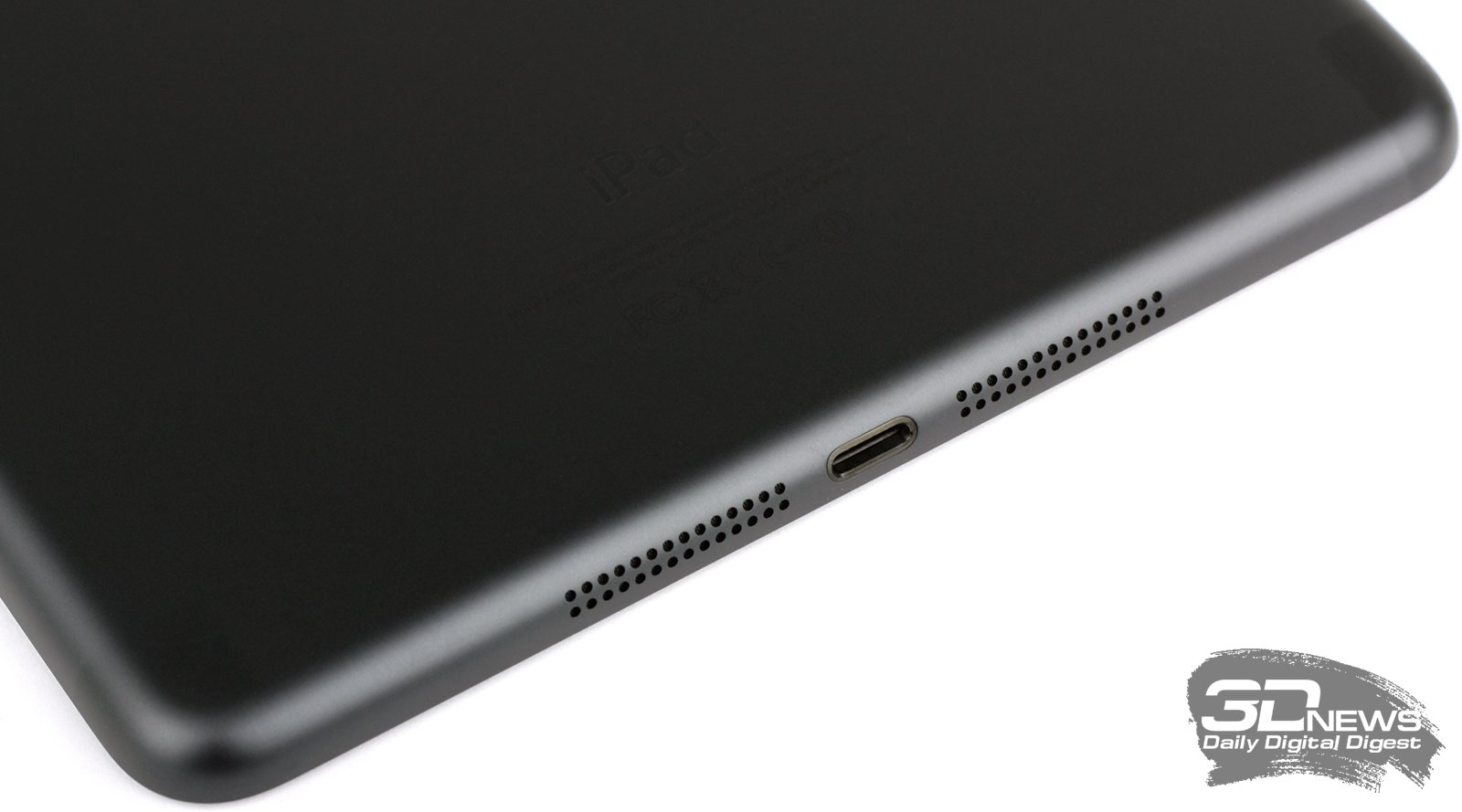 Последнее из важных изменений, заметных внешне, – на месте 30-контактного разъема теперь красуется миниатюрный Lightning. Для владельцев пятых айфонов это даже может стать аргументом в споре с жабой — пара аксессуаров с таким разъемом у них уже наверняка есть. Справа и слева от порта Lightning расположены динамики — их у iPad mini целых два, чем большие «айпады» похвастаться не могут. Собственно, если верить ребятам из iFixit, «мини» — это вообще первое устройство Apple с двумя настоящими динамиками, у остальных были муляжи.