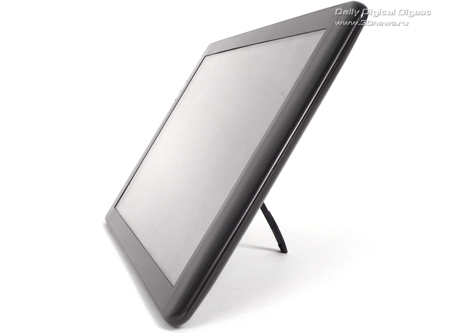 В крайнем положении — примерно 135 градусов — подставка удерживает устройство весьма надежно. Однако в промежуточных положениях она фиксируется довольно слабо, и при работе с сенсорным экраном планшет быстро «сползает». Если не трогать устройство, то оно вполне может стоять под любым углом — для работы Archos 101 в качестве цифровой фоторамки ножка вполне подходит.