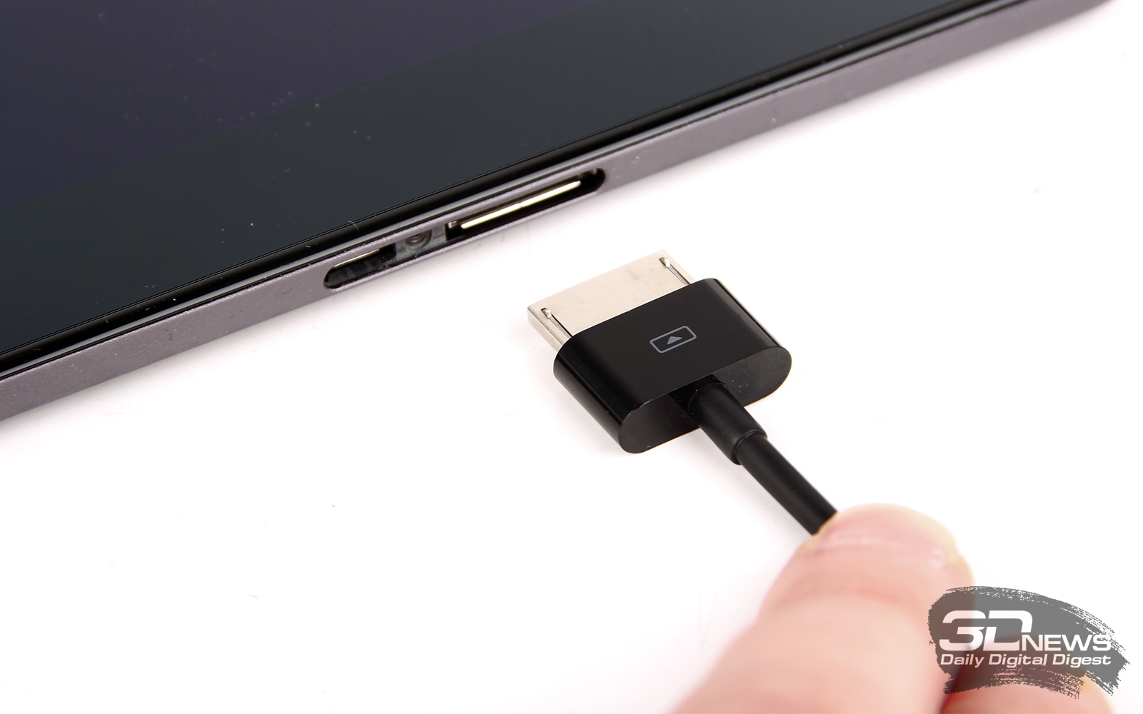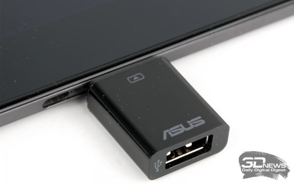 Но это не все: в комплекте с планшетом поставляется переходник, позволяющий превратить этот разъем в полноценный USB-порт. Подключить можно что угодно, от флешки до внешнего жесткого диска и принтера. Выглядит это несколько громоздко, но из всех вариантов впихивания разъема толщиной 6 мм в корпус устройства толщиной менее 9 мм этот, вероятно, самый удачный.