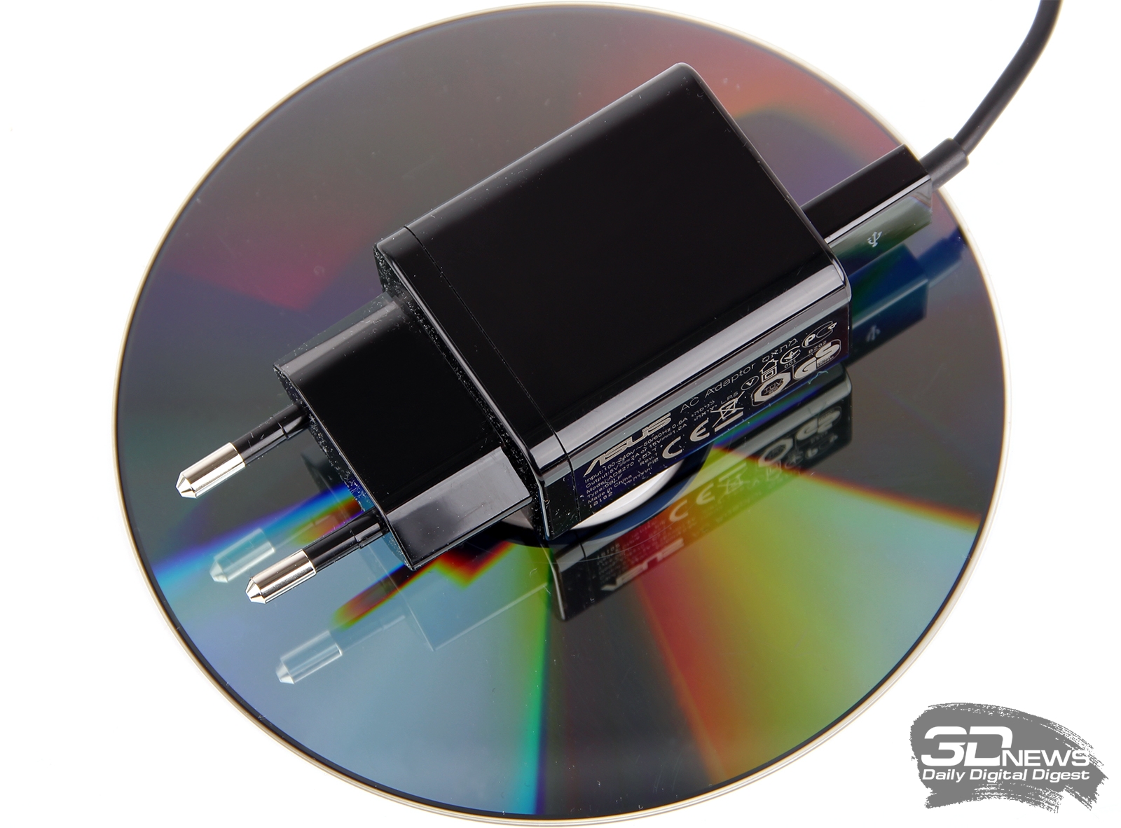 Для питания и зарядки использован чрезвычайно компактный адаптер мощностью 18 Вт — точно таким же комплектуются устройства из линейки ASUS Transformer.