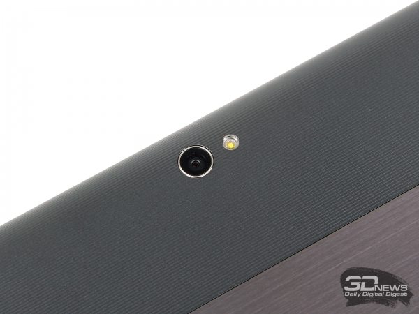 Большая часть задней стороны корпуса закрыта металлическим листом. Однако в верхней части имеется крупная пластиковая вставка, примерно в четверть высоты корпуса. За ней живут антенны — Wi-Fi, Bluetooth и NFC. Да-да, в VivoTab есть NFC, что выгодно отличает его от большинства других Wintel-планшетов.