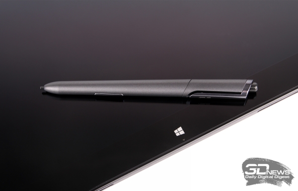 Дизайн пера одновременно и удачен, и нет. С одной стороны, его размеры и форма таковы, что перо чрезвычайно удобно держать в руке. С другой стороны, ровно по той же причине в планшете нет пенала, в котором перо можно было бы хранить.