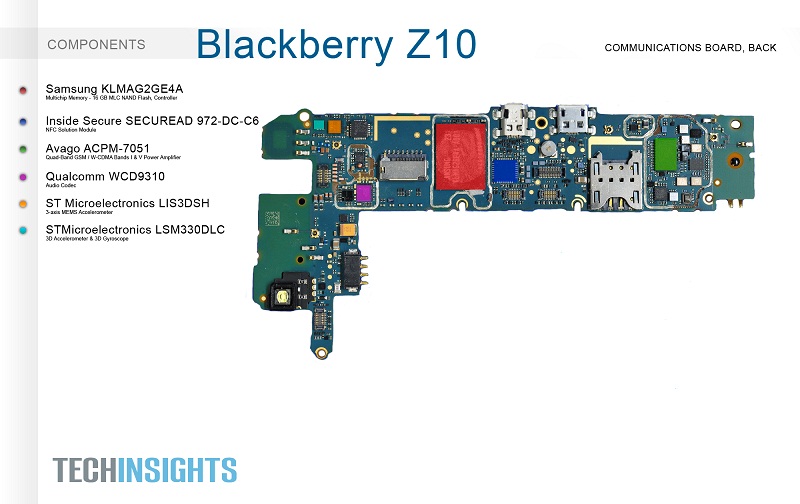 Несколько компонентов BlackBerry позаимствовала у своего конкурента — Samsung Electronics. В частности, южнокорейский гигант поставляет ей 2-Гбайт память LPDDR2 и накопитель MLC NAND ёмкостью 16 Гбайт, а также соответствующие контроллеры. От Texas Instruments новый смартфон получил однокристальное решение, интегрирующее функции Wi-Fi, 802.11/a/b/g/n, Bluetooth, FM-радио. Контроллер для ёмкостного сенсорного дисплея предложила компания Synaptics — Clearpad 3203. Также Z10 отличается поддержкой NFC благодаря чипу Secure SecuRead IC5C633I4. В целом, по многим компонентам Z10 похож на LTE-версию Samsung Galaxy S3.