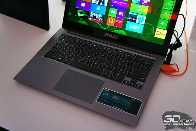 Для начала стоит сказать о сенсорном 13,3-дюймовом ультратонком ноутбуке ASUS U38N, оснащённом 4-ядерным чипом AMD A10-4655M с графикой Radeon 7620G. Этот 32-нм процессор, несмотря на приличную рабочую частоту CPU в 2000 МГц (Turbo — до 2800 МГц), потребляет не более 25 Вт.