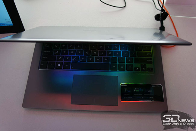 Стоит упомянуть наличие глянцевого ёмкостного мультисенсорного IPS-экрана с разрешением Full HD (1920 x 1080). Среди прочих характеристик можно выделить 500-Гбайт HDD (или 128-Гбайт флеш-накопитель), до 4 Гбайт оперативной памяти DDR3 @1600 МГц, веб-камеру с разрешением 720p, поддержку Wi-Fi и Bluetooth 4.0, а также звук от Bang & Olufsen ICE. Ноутбук имеет три порта USB 3.0, разъёмы HDMI, VGA и одно комбинированное аудиогнездо.