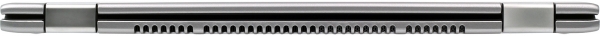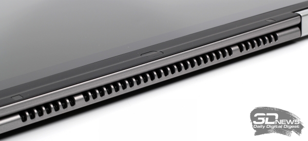 Во-вторых, днище ноутбука в планшетном режиме оказывается между корпусом и крышкой, так что его потребовалось разгрузить от вентиляционных отверстий — их сконцентрировали на задней грани, и после этого на ней больше ничего не поместилось.