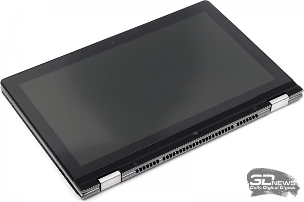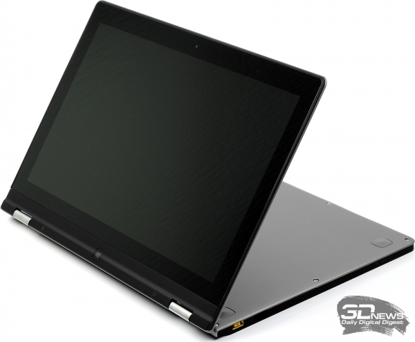 У компании Lenovo есть свой собственный взгляд на то, как может быть устроен трансформируемый ноутбук. С точки зрения конструкции он чрезвычайно элегантный: чтобы сложить ноутбук «дисплеем наружу» достаточно сделать двойные петли, позволяющие откинуть крышку не на 90, не на 120 и даже не на 180 градусов — а сразу на 360. Фактически вывернуть ноутбук наизнанку.