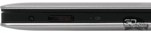 Возможность трансформации наложила немалые ограничения на количество и расположение коммуникационных разъемов. Во-первых, часть боковых сторон занята кнопками, необходимыми в планшетном варианте. Скажем, кнопку включения вынесли на переднюю грань. На левой стороне конструкторы разместили кнопки регулировки громкости, на правой — отключение автоматического поворота изображения.