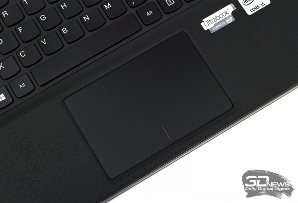 Ход клавиш достаточно длинный по меркам ультрабуков, механика работает исключительно хорошо. Однако жесткости подложки клавиатуре недостает — даже под ударами средней силы она ощутимо «гуляет». Подсветки клавиш не предусмотрено, что странно, ведь ноутбук-то не из дешевых.