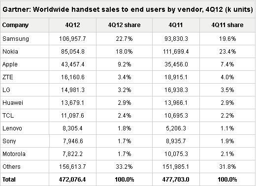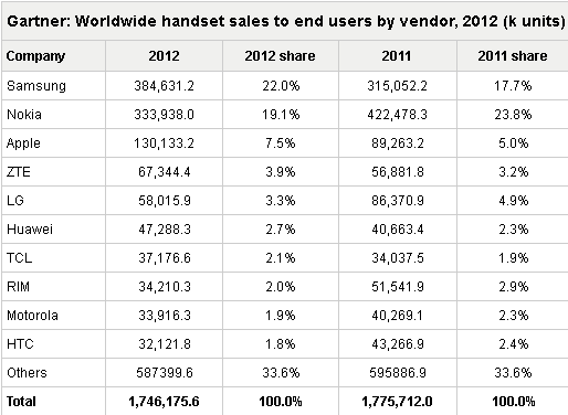 Интересно отметить появление в рейтинге китайской компании Lenovo. Она переместилась из аутсайдеров сразу на восьмую позицию. Что касается Huawei, то она на рынке телефонов заняла шестое место, но по продажам смартфонов вошла в тройку лидеров.