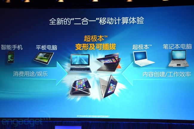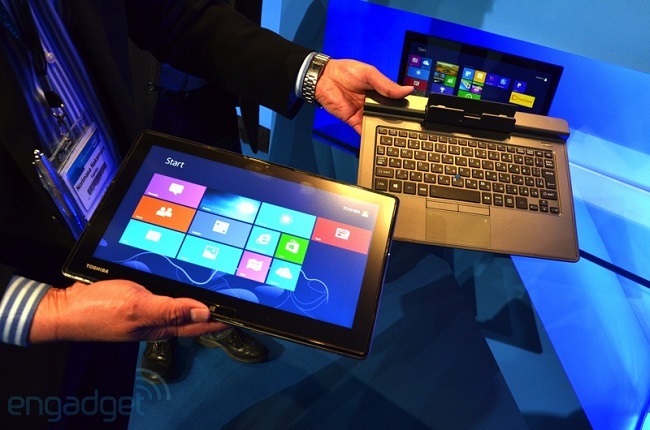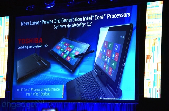 Речь идет о пока ещё не анонсированном ультрабуке Portege Z10t компании Toshiba. Эта модель отличается съёмным дисплеем, который, судя по всему, может использоваться отдельно в качестве планшетного компьютера. Журналисты отметили клавиатуру со светодиодной подсветкой, а также довольно компактные габариты устройства. Ультрабук включает 10-дюймовый сенсорный дисплей, процессор Intel Ivy Bridge, порты USB 3.0, micro-HDMI, гнездо для карт SD. В качестве операционной системы используется Windows 8.