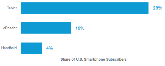 Согласно отчету «2013 U.S. Digital Future in Focus» аналитического агентства comScore, более 50% на рынке мобильных устройств в США в 2012 году составили смартфоны, которые постепенно вытесняют так называемые "feature phones". Многие приложения, которые раньше выполнялись исключительно на настольных ПК, теперь запускаются со смартфонов. Например, чтение новостей, погоды, общение с помощью сетей мгновенных сообщений, покупки становятся всё привычнее для мобильных пользователей.