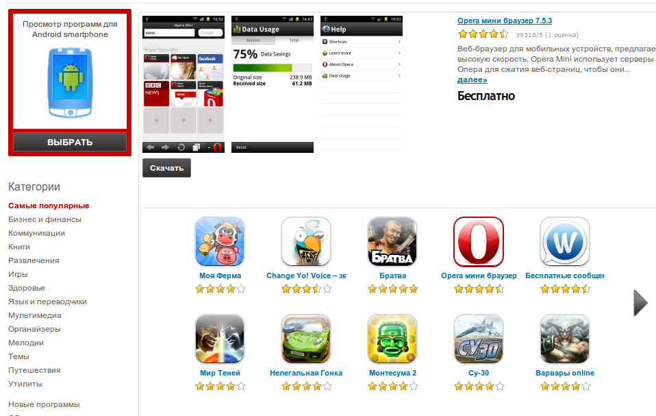 Топ-10 самых скачиваемых приложений Opera Mobile Store среди российских пользователей (по количеству ежемесячных скачиваний):