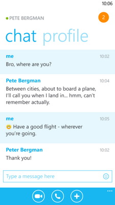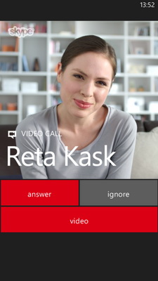 По аналогии с версией для Windows 8, Skype для Windows Phone 8 позволяет всегда оставаться на связи. Благодаря интеграции в ОС, пользователь сразу узнает о входящем звонке или сообщении, даже если Skype остаётся незапущенным. Интерфейс приёма входящих звонков Skype внешне не отличается от окна ответа на обычный звонок средствами Windows Phone. А функция ожидания вызова позволит переключаться между звонками, одновременно поступившими по сотовой сети и через Skype.