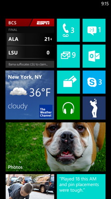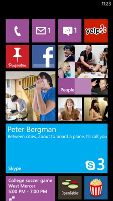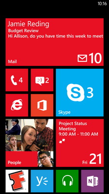 Закреплённая на домашней странице масштабируемая плитка Skype отображает количество непрочитанных сообщений, а если размер плитки большой — то и первые строки последнего поступившего сообщения без необходимости запуска приложения.