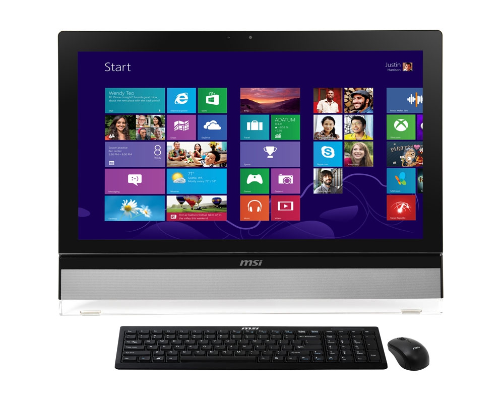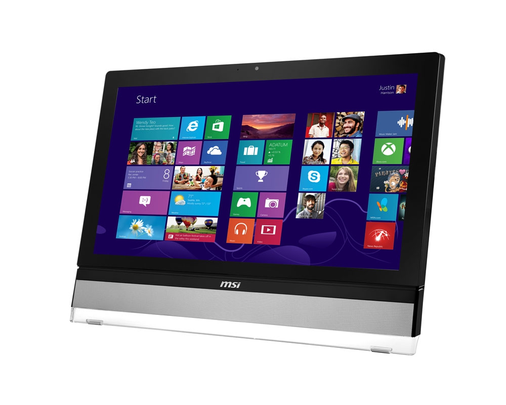 Характеристики MSI Wind Top AE2712/AE2712G включают 27-дюймовый дисплей с LED-подсветкой и разрешением 1920 х 1080 пикселей, который может быть дополнен сенсорной панелью с поддержкой 10 одновременных точек касания, а также процессор Intel Core i5 третьего поколения, к примеру, Core i5-3470S с 6 МБ кэша и тактовой частотой 2,9 ГГц (до 3,6 ГГц в “турборежиме”). Кроме того, наличествует 4 ГБ памяти DDR3 1333 с возможностью расширения до 8 ГБ и жесткий диск емкостью 1 ТБ со скоростью вращения шпинделя 7200 об/мин плюс оптический привод DVD Super Multi.