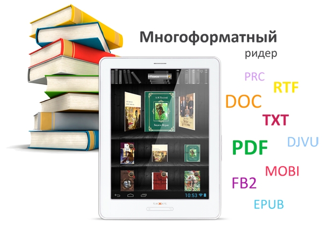 Компания «Электронные системы «Алкотел» представила в России ридер teXet TB-883A с мультимедийным функционалом. Устройство оснащено 8-дюймовым сенсорным дисплеем с разрешением 600х800 пикселей и процессором с тактовой частотой 1,0 ГГц. Объём оперативной памяти составляет 512 Мбайт, интегрированный накопитель может хранить 4 Гбайт данных (расширяется за счёт карт microSD). Имеется модуль Wi-Fi (802.11b/g/n) для беспроводного подключения к Интернету.