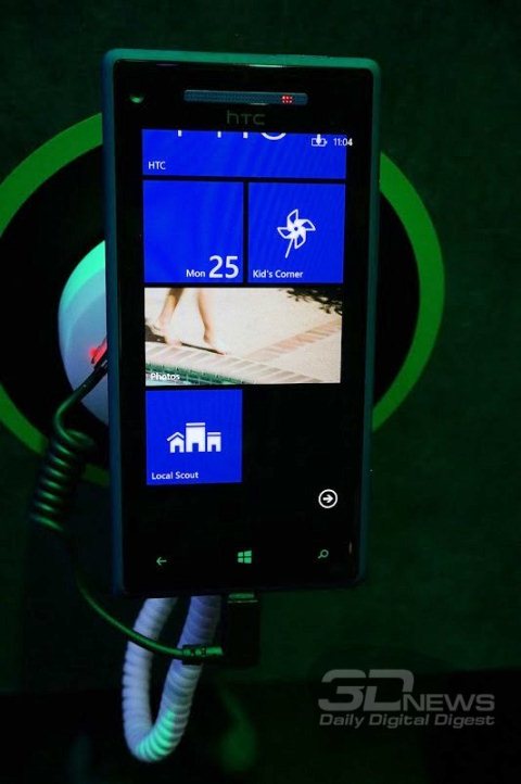 Также на стенде компании HTC был выставлен смартфон HTC 8X, работающий под управлением Windows Phone 8. Гаджет получил 4.3-дюймовый дисплей с разрешением 720х1280 точек (342 ppi), двухъядерный процессор Qualcomm MSM8960 с тактовой частотой 1,5 ГГц, графический ускоритель Adreno 225, 1 Гбайт оперативной памяти, 16 Гбайт встроенной памяти, 8-мегапиксельную основную и 2,1-мегапиксельную фронтальную камеру. Питание устройства обеспечивается аккумулятором емкостью 1800 мАч.